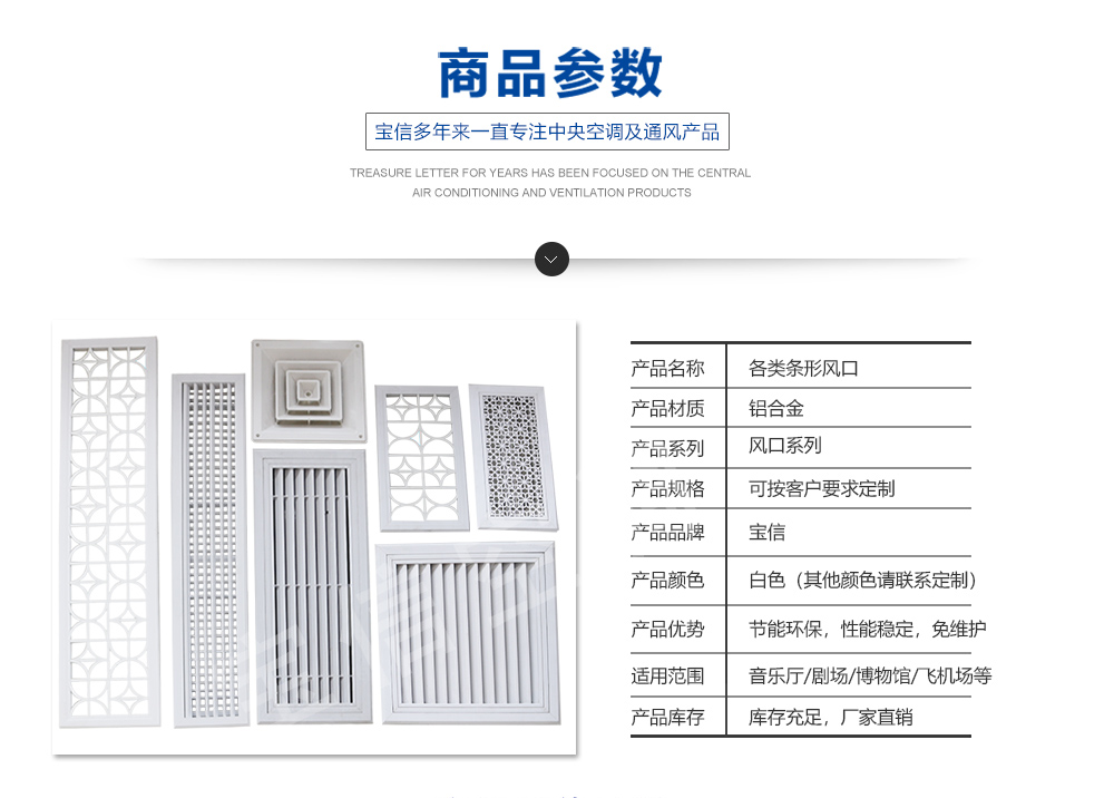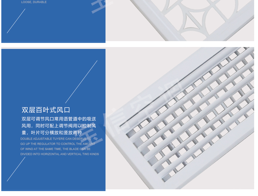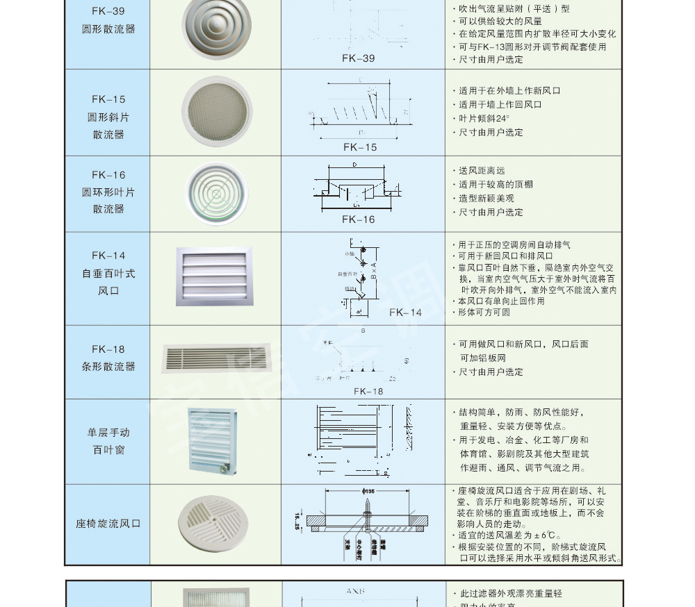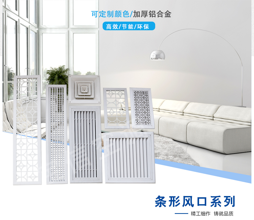 根据需要风量[送风或排(回)风],在风口颈部(或风口进出口断面处)允许的风速范围内,确定所需风口的尺寸。如按风口风速(一般为2~5m/s)确定风口尺寸时,应考虑风口的有效面积率(一般为30%~60%)。