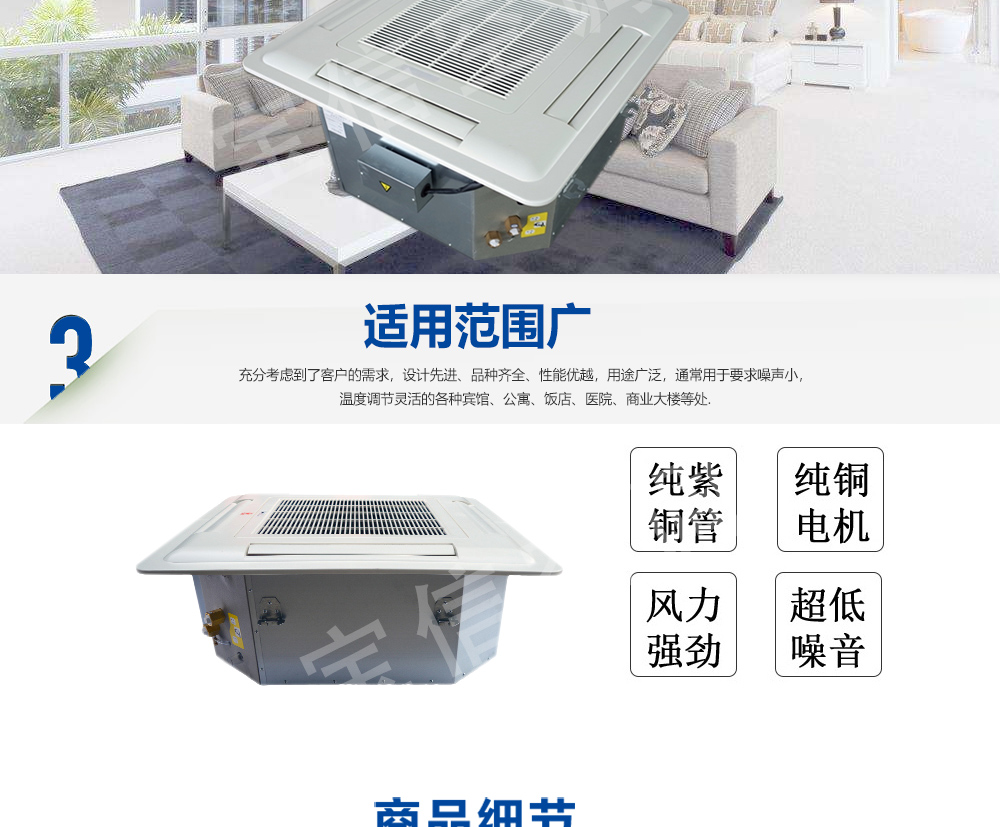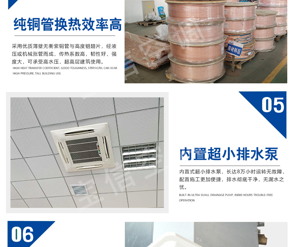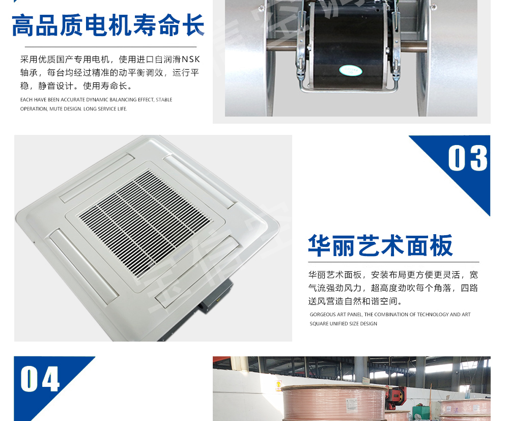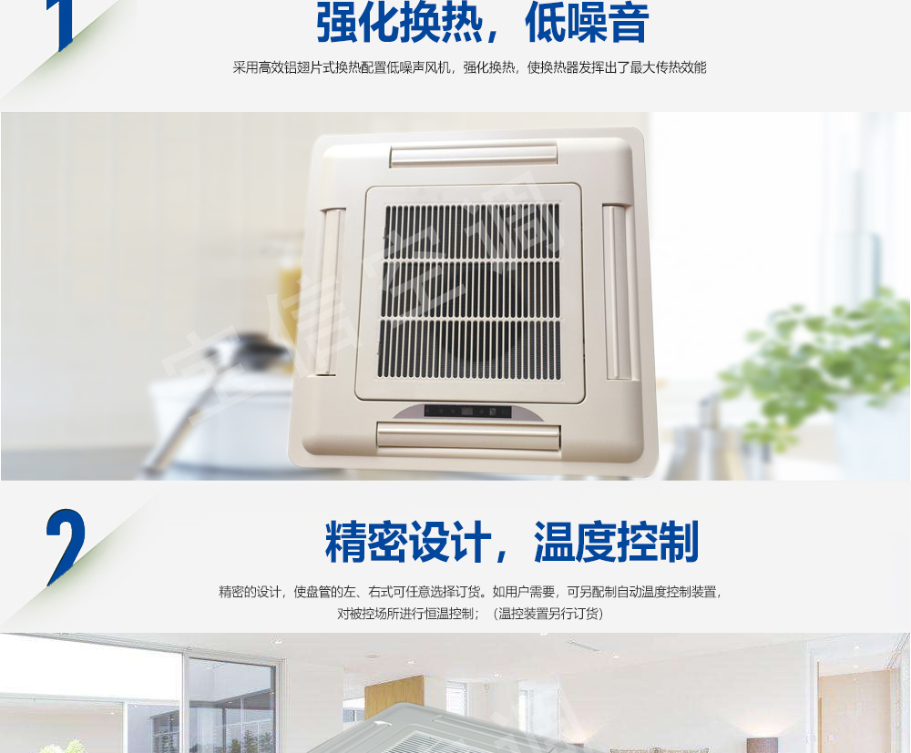 FP系列风机盘管机组吸收了国内外同类产品的先进强项技术,依据国家相关标准,并经反复试制和测定,高效率的完成了一系列的技术设计改进,故而性能优越、用途广泛、品种齐全、效率高、故障少、噪声低,其品种有卧式暗装、卧式明装、立式暗装、立式明装、卡式机组等系列,与新风机组配套后广泛应用于宾馆、医院、办公用房、高级会议厅、展览厅等低噪声场所,是集中式空调系统理想的末端装置。
