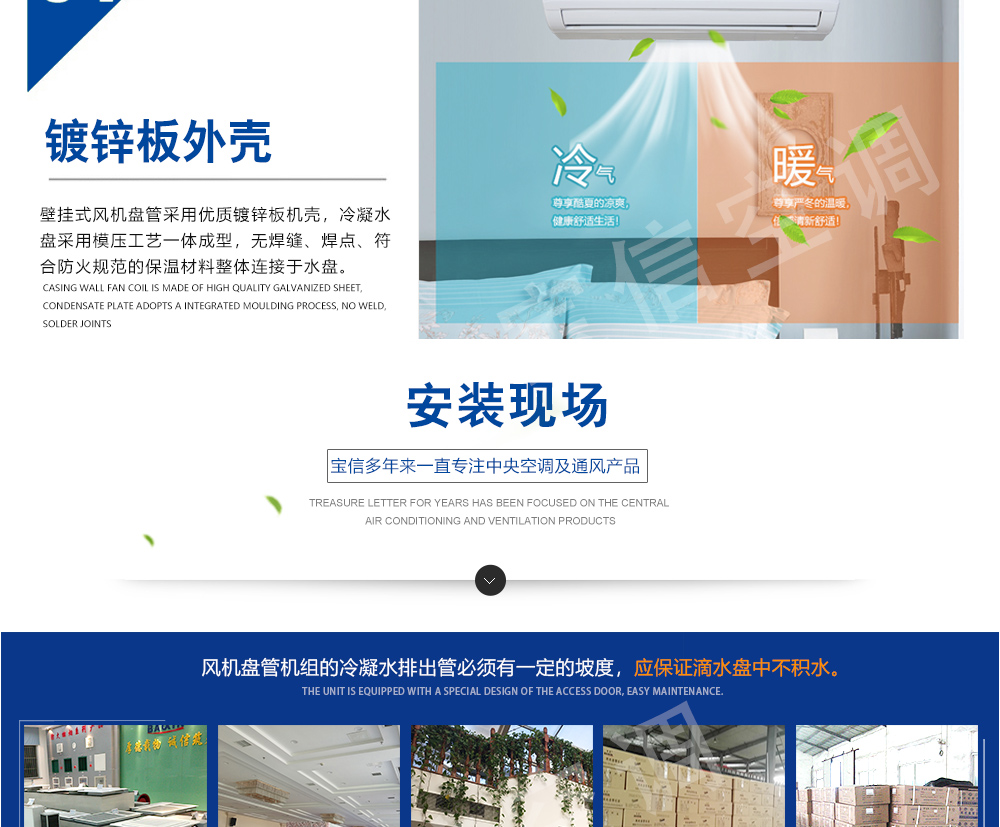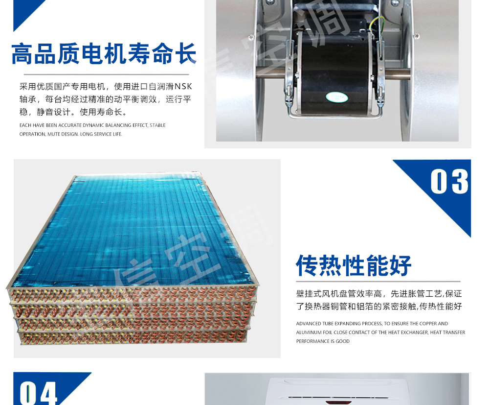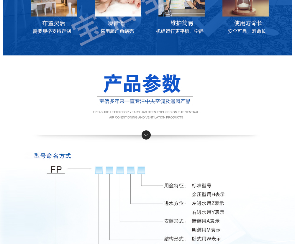 FP系列风机盘管机组吸收了国内外同类产品的先进强项技术,依据国家相关标准,并经反复试制和测定,高效率的完成了一系列的技术设计改进,故而性能优越、用途广泛、品种齐全、效率高、故障少、噪声低,其品种有卧式暗装、卧式明装、立式暗装、立式明装、卡式机组等系列,与新风机组配套后广泛应用于宾馆、医院、办公用房、高级会议厅、展览厅等低噪声场所,是集中式空调系统理想的末端装置。
