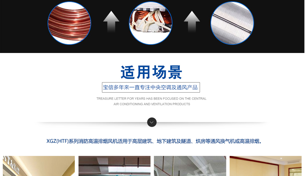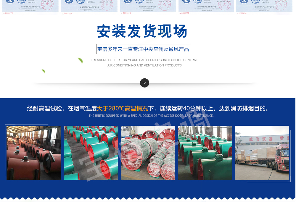XGZ(HTF)系列消防高温排烟风机适用于高层建筑、地下建筑及隧道、烘房等通风换气机或高温排烟。能在280℃高温条件下连续运转30分钟以上,介质温度100℃条件下连续运行20小时/次不损坏,是理想的消防必备设施。
