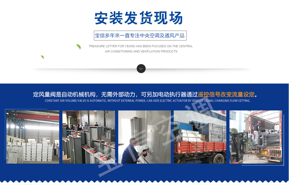 定风量阀,是一种机械式自力装置,适用于需要定风量的通风空调系统中。定风量阀风量控制不需要外加动力,它依靠风管内气流力来定位控制阀门的位置,从而在整个压力差范围内将气流保持在预先设定的流量上。