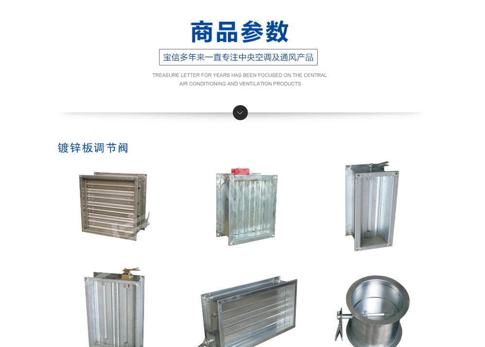 镀锌板调节阀是工业厂房民用建筑的通风、空气调节及空气净化工程中不可缺少的中央空调末端配件,一般用在空调,通风系统管道中,用来调节支管的风量,也可用于新风与回风的混合调节。