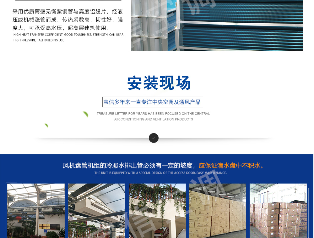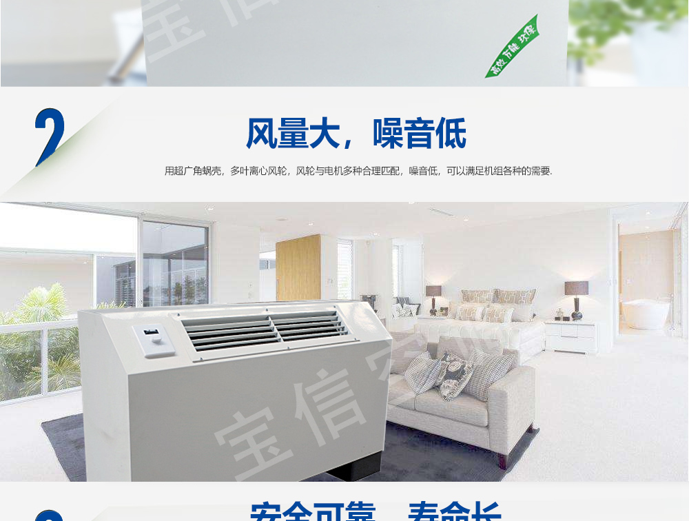 FP系列风机盘管机组吸收了国内外同类产品的先进强项技术,依据国家相关标准,并经反复试制和测定,高效率的完成了一系列的技术设计改进,故而性能优越、用途广泛、品种齐全、效率高、故障少、噪声低,其品种有卧式暗装、卧式明装、立式暗装、立式明装、卡式机组等系列,与新风机组配套后广泛应用于宾馆、医院、办公用房、高级会议厅、展览厅等低噪声场所,是集中式空调系统理想的末端装置。