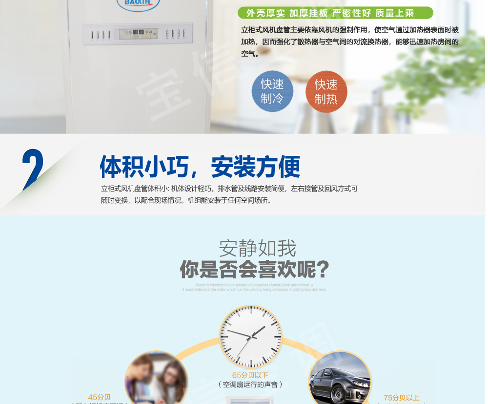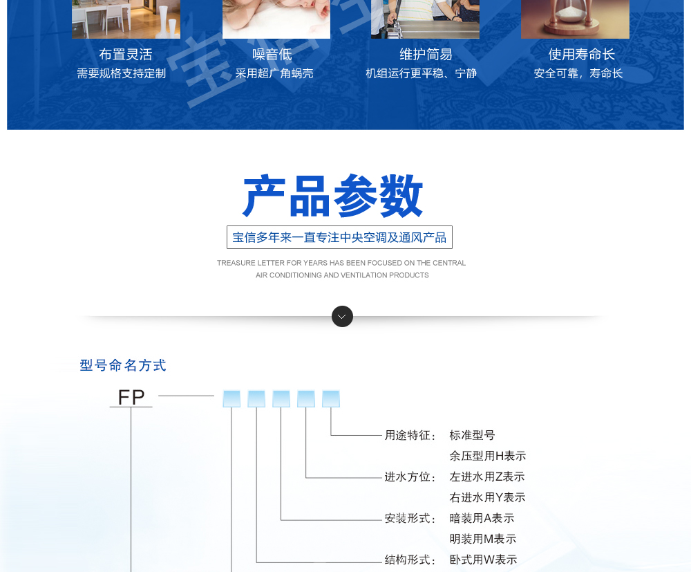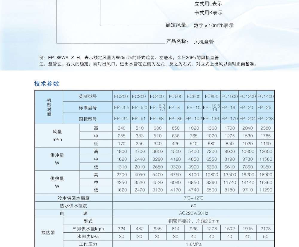 FP系列风机盘管机组吸收了国内外同类产品的先进强项技术,依据国家相关标准,并经反复试制和测定,高效率的完成了一系列的技术设计改进,故而性能优越、用途广泛、品种齐全、效率高、故障少、噪声低,其品种有卧式暗装、卧式明装、立式暗装、立式明装、卡式机组等系列,与新风机组配套后广泛应用于宾馆、医院、办公用房、高级会议厅、展览厅等低噪声场所,是集中式空调系统理想的末端装置。