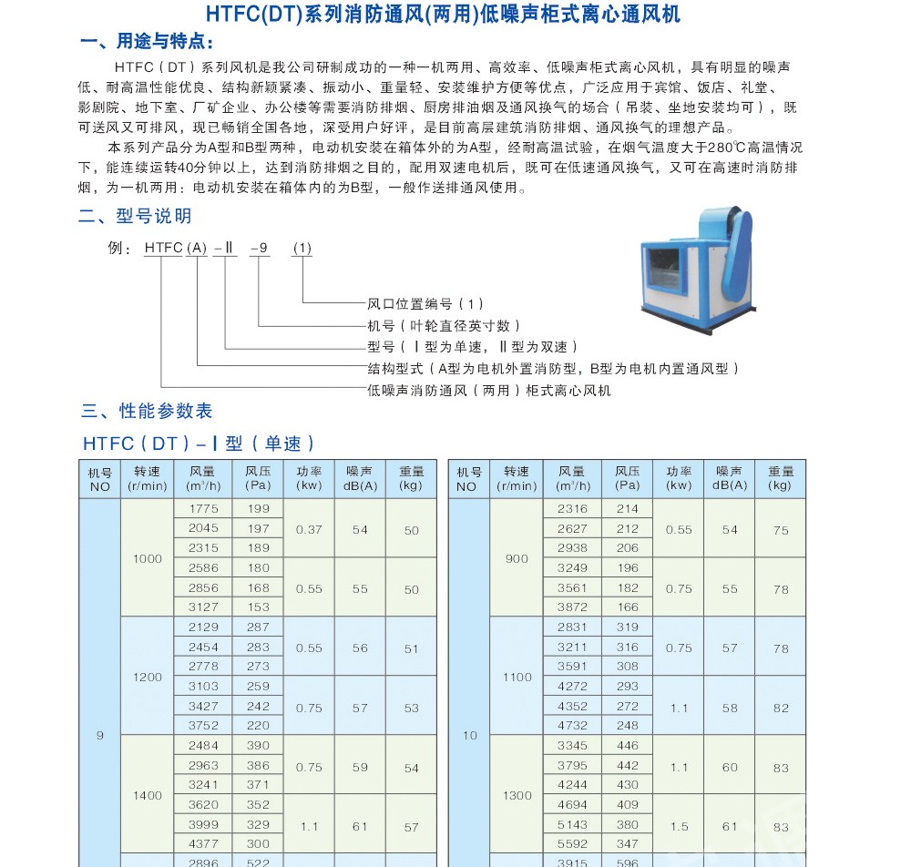 消防通风(两用)低噪声柜式离心通风机用途与特点