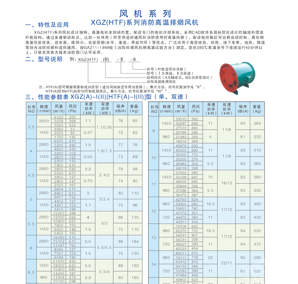 XGZ(HTF)系列消防高温排烟风机适用于高层建筑、地下建筑及隧道、烘房等通风换气机或高温排烟。能在280℃高温条件下连续运转30分钟以上,介质温度100℃条件下连续运行20小时/次不损坏,是理想的消防必备设施。