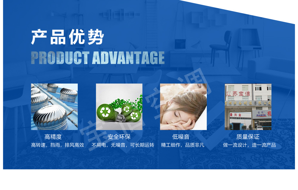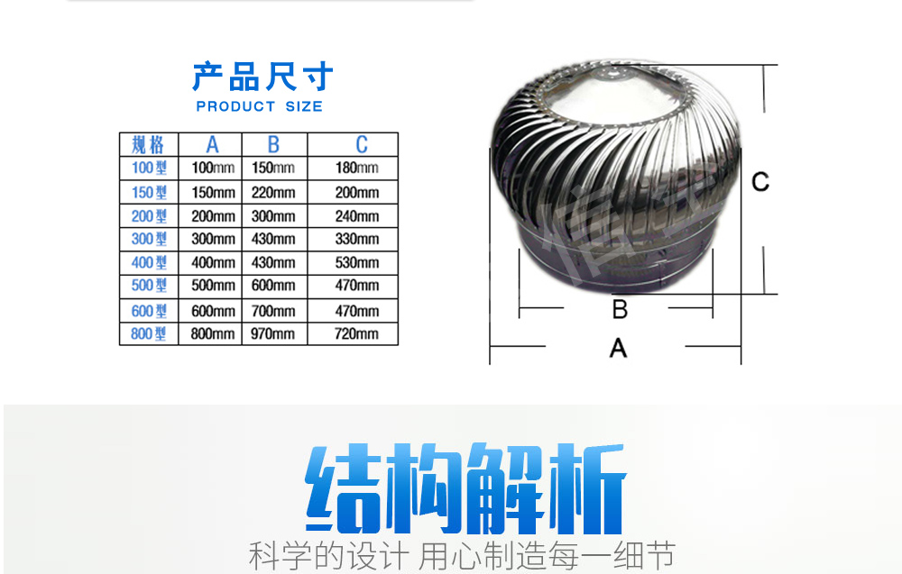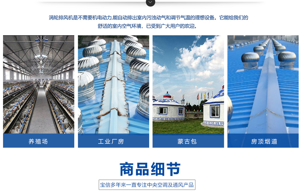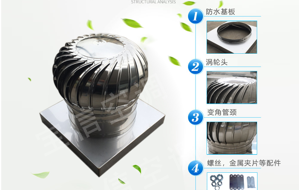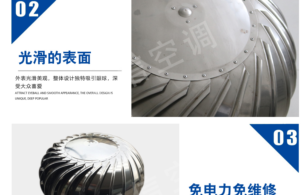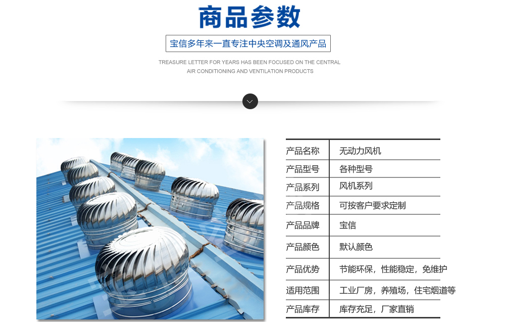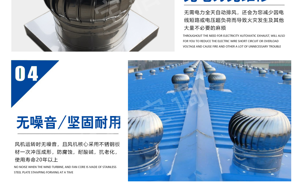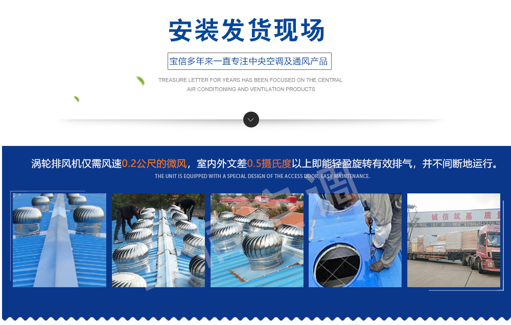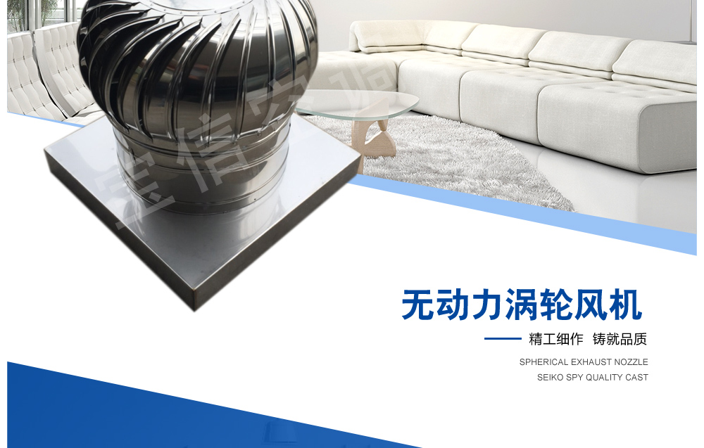 的原理,将任何平行方向的空气流动,加速并转变为由下而上垂直的空气流动,以提高室内通风换气效果的一种装置。该风机不用电,无噪音,可长期运转。其根据空气自然规律和气流流动原理,合理化设置在屋面的顶部,能迅速排出室内的