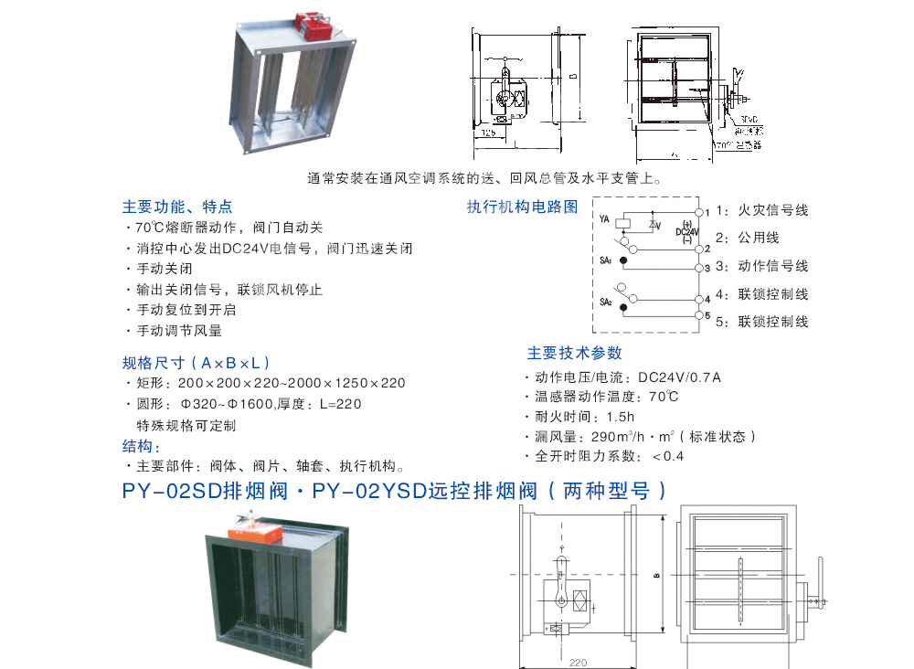 PY-02YSD排烟阀可远控手动开启,远控手动复位
