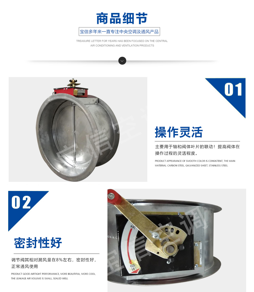 镀锌板调节阀是工业厂房民用建筑的通风、空气调节及空气净化工程中不可缺少的中央空调末端配件,一般用在空调,通风系统管道中,用来调节支管的风量,也可用于新风与回风的混合调节。